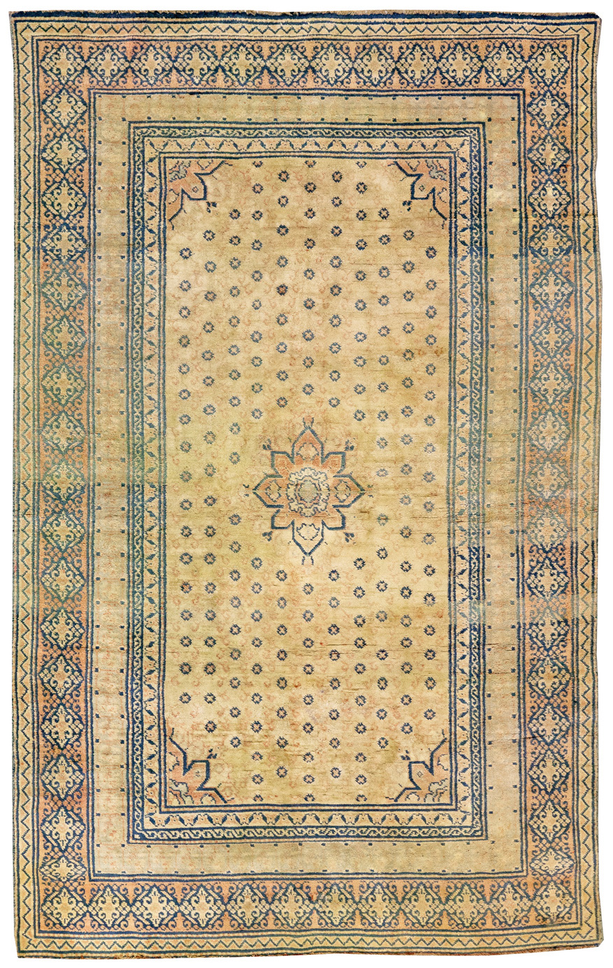 These Antique Indian Rugs hand-knotted are made out of 100% wool. Some of them were made for the European market, such as Agra Rugs and Amritsar. But typically they were made only for royalty. The colouring of the Antique Indian Rugs originally came from Persia, the colours reds and blues were as beautiful as those of that country. Other Antique Indian Rugs names are Kandahar, Mirzapur, Mashad, Lahrestan,and Mogol.